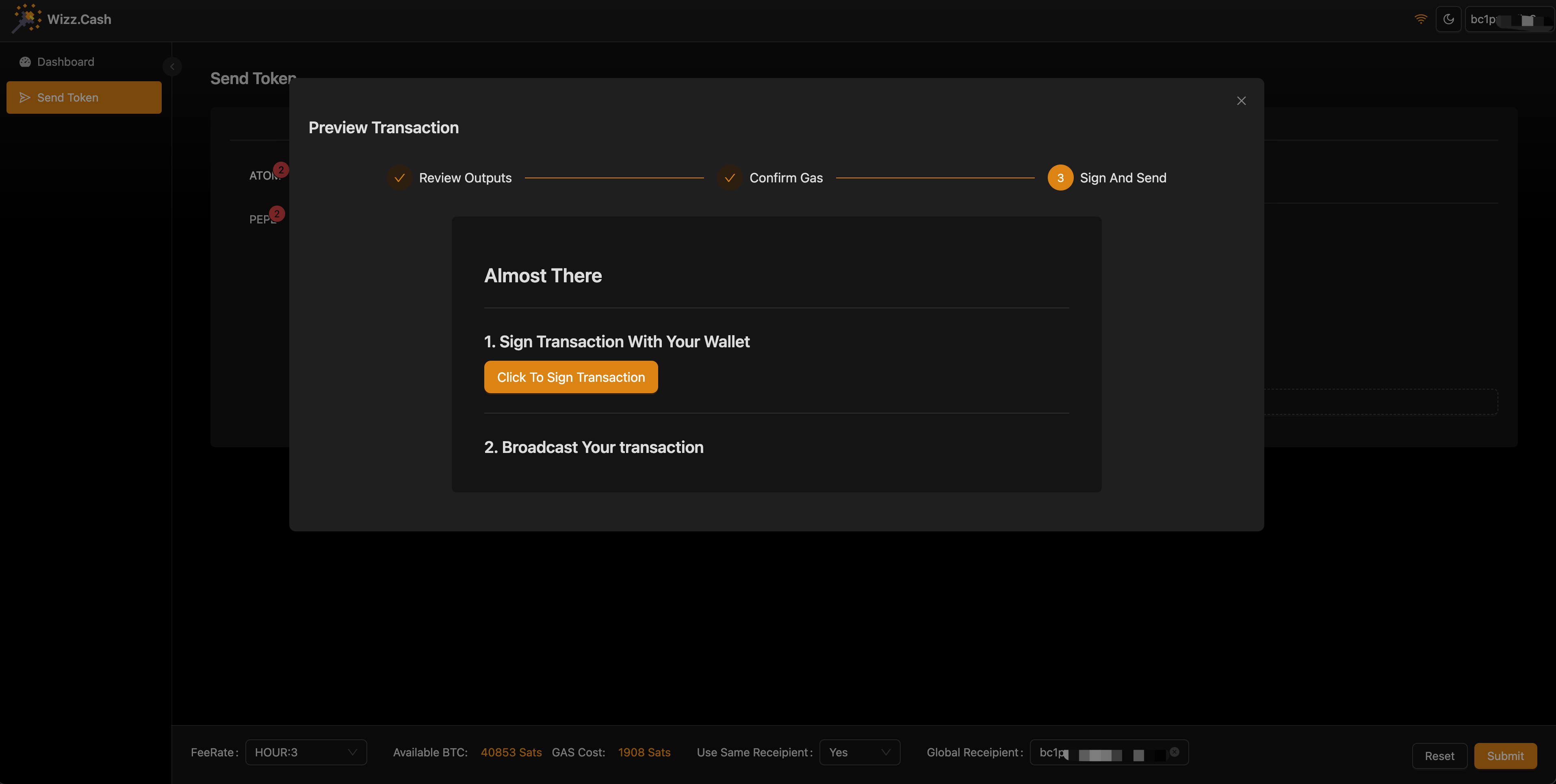 现在，只需点击“Send Token”按钮即可开始转账。