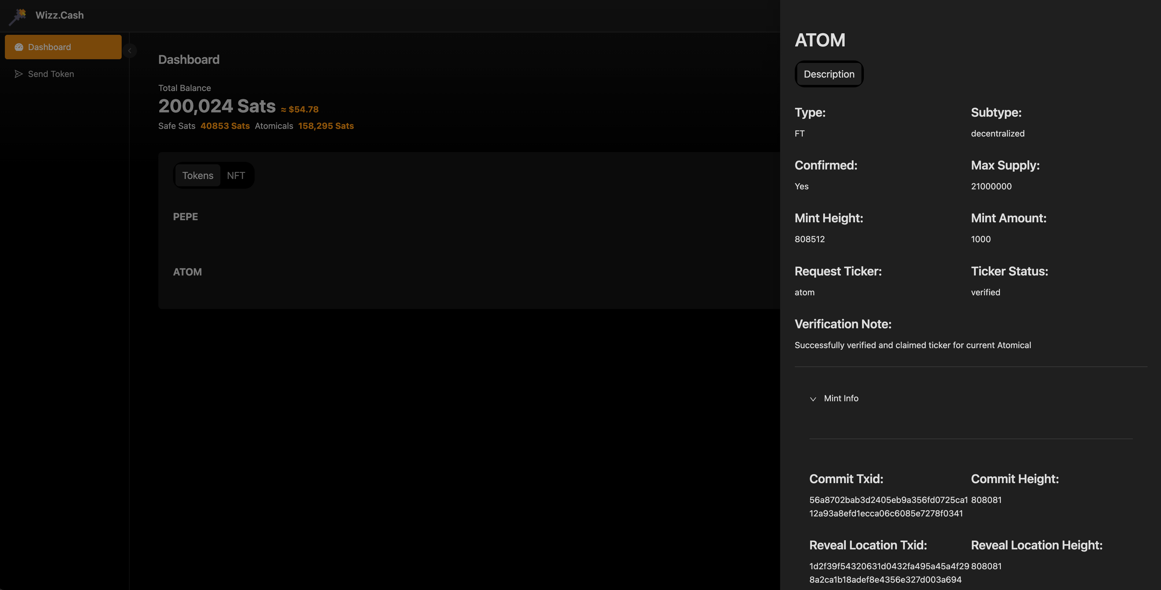 点击任何一个ARC-20代币后，可以查看代币的详细信息。